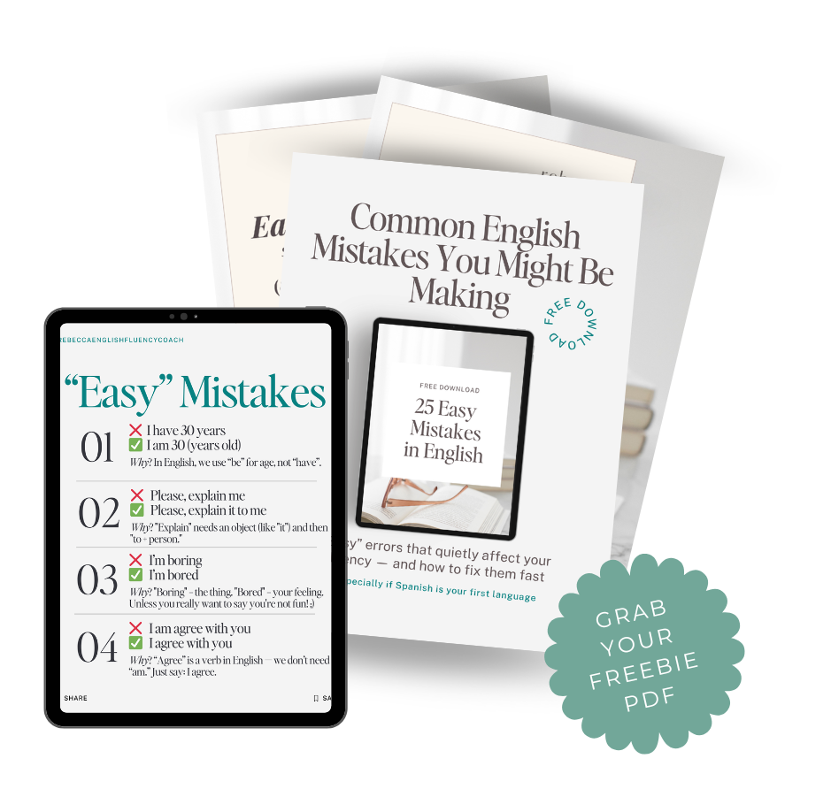 Love the blog? Keep the tips coming! Download my free guide "25 Easy English Mistakes (and How to Fix Them)" and get weekly fluency boosts, mindset shifts, and behind-the.scenes stories delivered straight to your inbox.Â